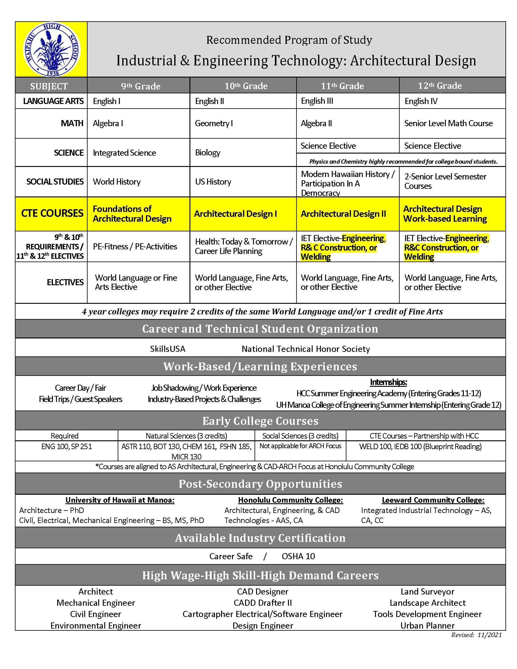 Architectural Design Industrial Engineering Technology Waipahu High School